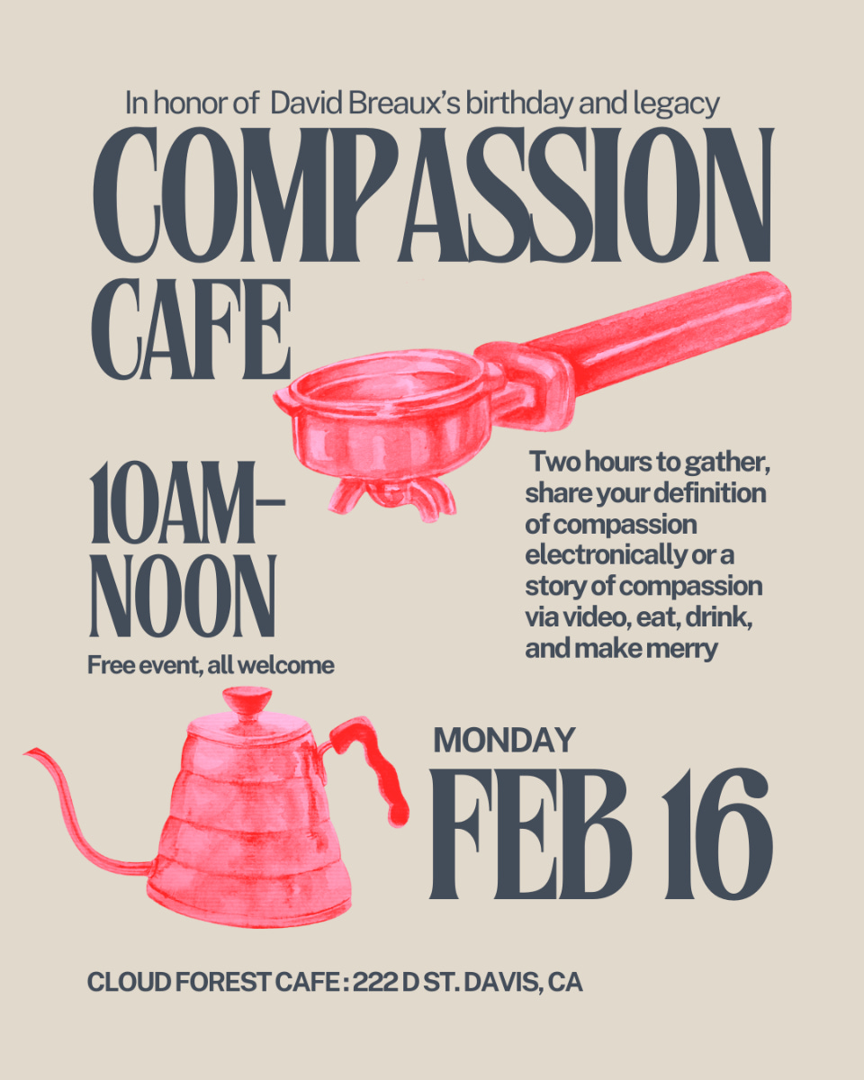 All this said, this year, to honor David’s legacy, celebrate his birthday, bring people together, and continue his compassion mission, we’re launching the first official Compassion Cafe.
